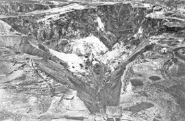 John Darlington, a mining engineer with extensive experience of the then new open-cut mining system, arrived in Adelaide in June and the following month went to Burra to assess its open-cut prospects. He found a mine in soft clayey ground that needed extensive and costly timbering. In September he recommended trying open-cut mining as an economic alternative. Ayers and three directors: G.S. Kingston, John Beck and Archibald Jaffery, went to Burra and accepted the recommendation.
