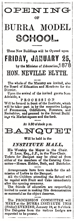 Except for four small private schools, in Burra secondary education was available only to students whose parents were able to send them to Adelaide schools until the government opened Burra High School in 1913. In each of these private schools younger pupils dominated and secondary students were a small group.