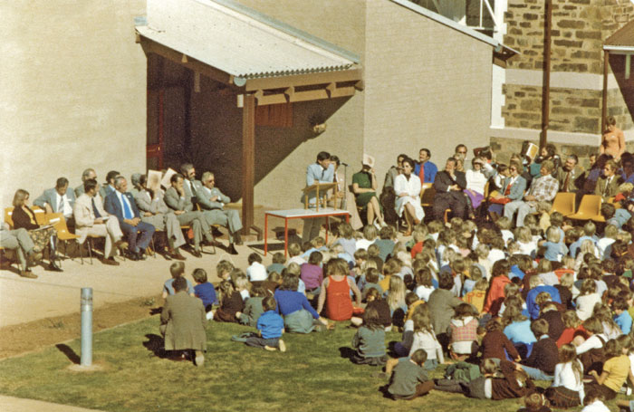 There was a peak enrolment of 177 in 1969. In 1976 the Primary and High Schools were merged to form the Burra Community School and a remodelling of the old building was combined with the construction of a new building complex. The remodelled old building was also designed to house the Community Library to serve the needs of both the school and the community.