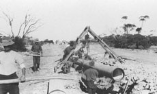 account of the sharp dip in the solid hard limestone rock, the bore hole "ran"